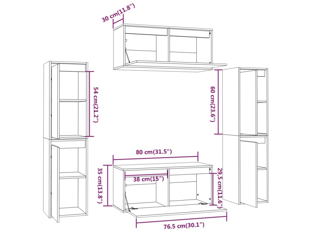 - 4 x TV skříňka: 30 x 30 x 60 cm (Š x H x V)