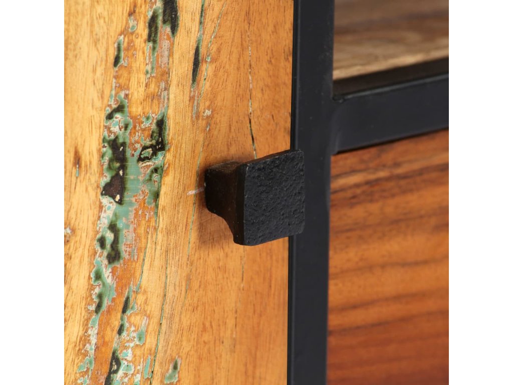 Tato HiFi skříňka je vyrobená z masivního recyklovaného dřeva, které pochází z trámů, podlah a podpěrných nosníků ze starých budov určených k demolici. Sestává tedy z různých druhů dřeva, jako jsou borovice, teak, buk, dub, cedr, mangovník, akácie apod. Recyklované dřevo tak nabývá vlastností všech těchto rozličných typů dřevin. Navíc je již zestárlé, ošlehané a vyschlé, takže se nesmršťuje ani neohýbá. Každá fáze výrobního procesu se provádí s největší péčí, ať už se jedná o leštění, natírání nebo lakování. Zručné řemeslné zpracování a půvabná kresba dřeva propůjčují každému kusu nábytku jeho jedinečný a od všech ostatních lehce odlišný vzhled. Tato skříňka se pyšní 2 dvířky, 2 zásuvkami a 1 přihrádkou, představuje tedy ideální řešení pro přehledné uschování drobných předmětů na dosah ruky. Práškově lakovaný ocelový rám dodává skříňce na pevnosti a stabilitě. Sestavení TV stolku je snadné.