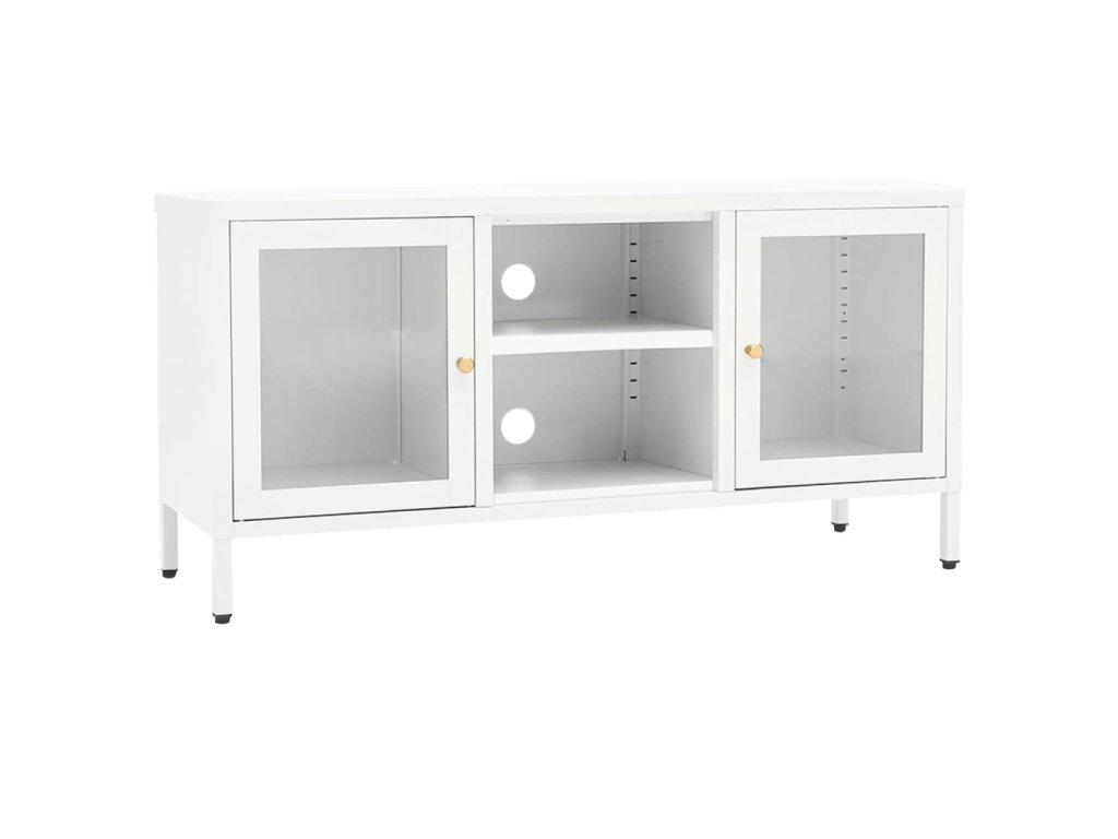 TV stolek bílý 105 x 35 x 52 cm ocel a sklo 336059