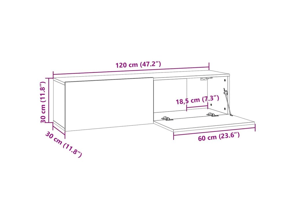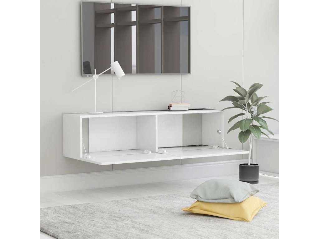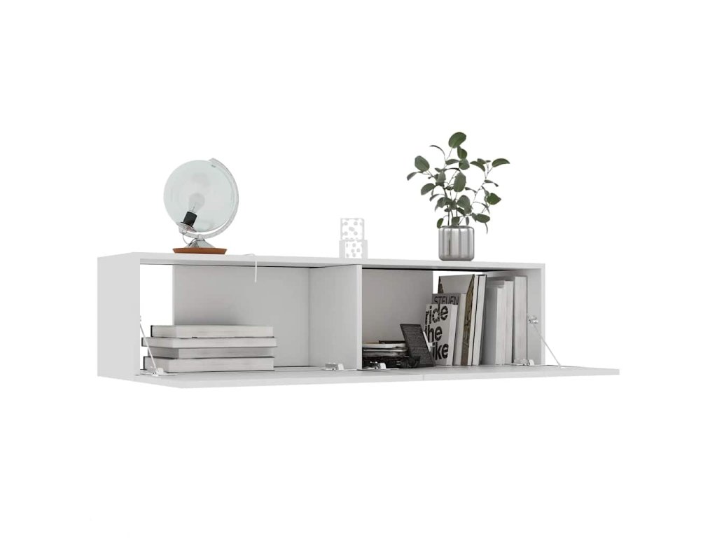 Stylový TV stolek se montuje na zeď, kde zapůsobí jako nadčasový doplněk vaší domácnosti. Obsahuje 2 přihrádky, je tedy ideální pro ukládání vašich časopisů, DVD a dalších věcí. Pro snazší přístup disponuje výklopnými dvířky. K očištění televizní skříňky vám postačí navlhčený hadřík.