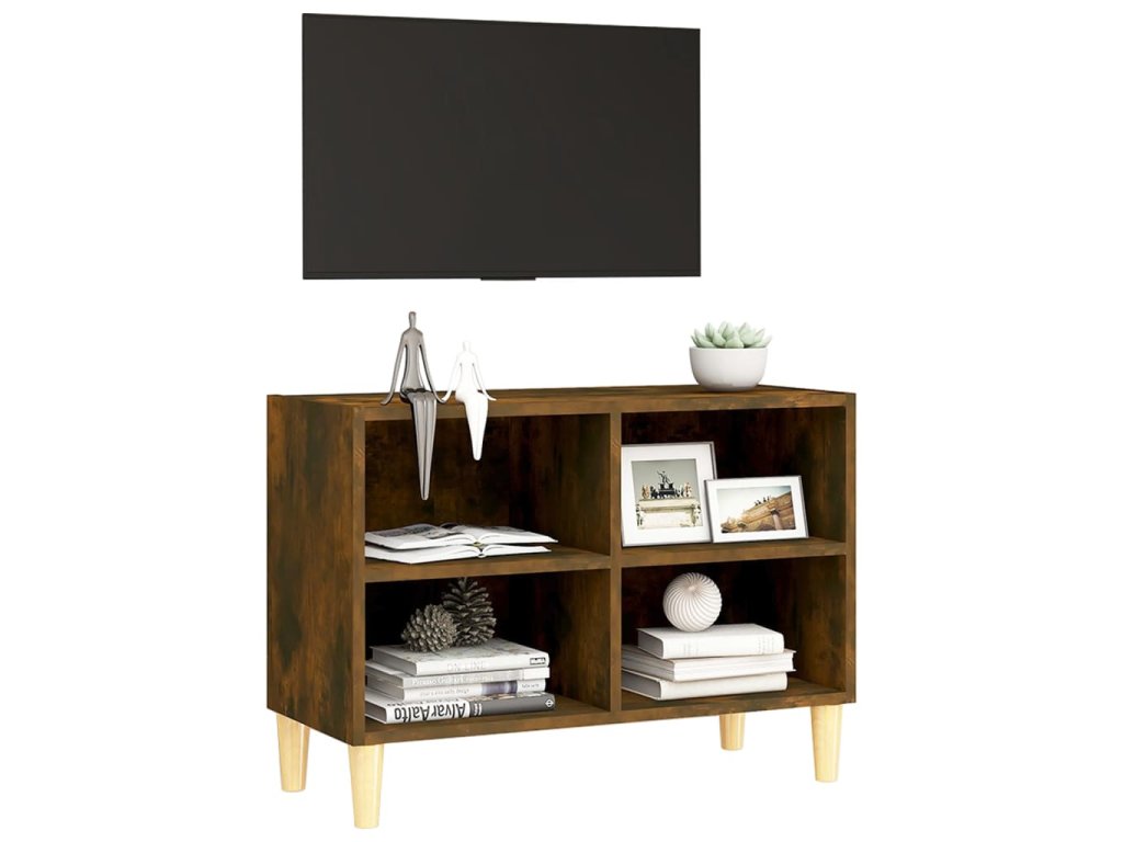 TV stolek masivní dřevěné nohy kouřový dub 69,5 x 30 x 50 cm 813146