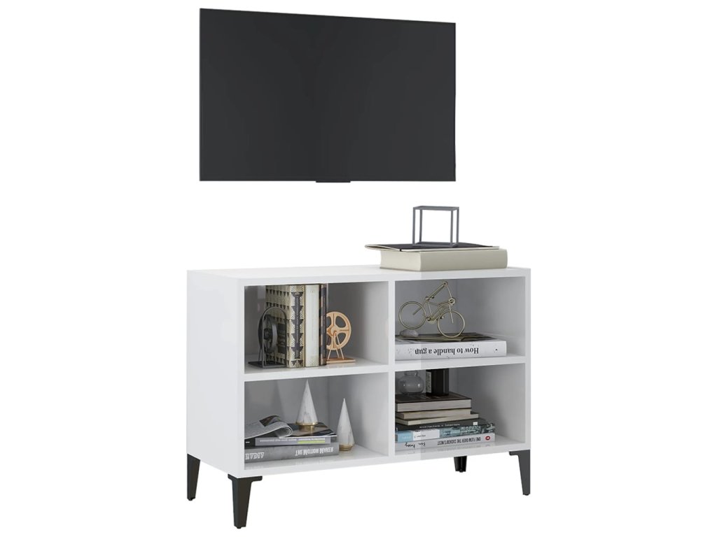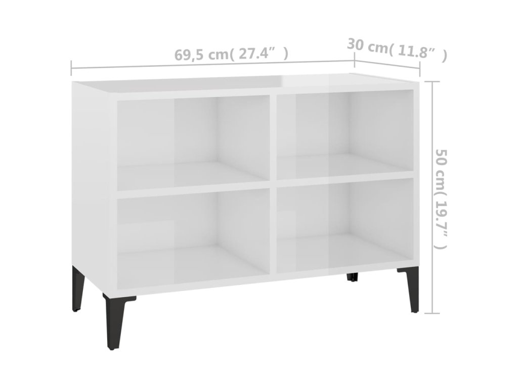 TV stolek s kovovými nohami bílý vysoký lesk 69,5 x 30 x 50 cm 805938