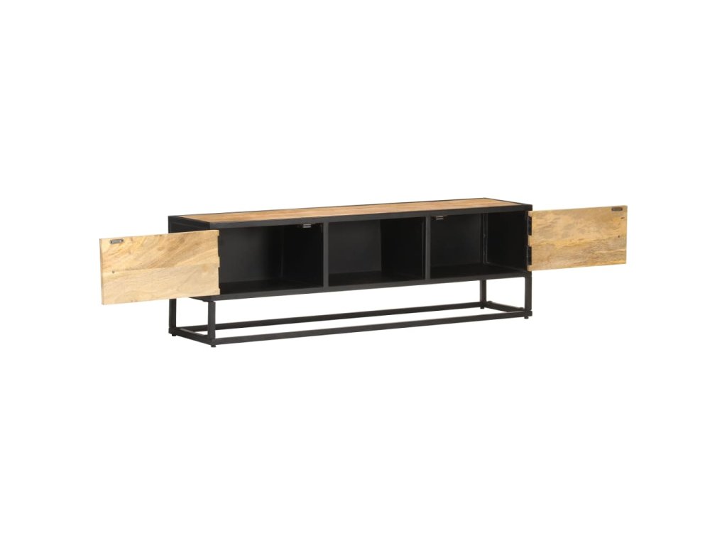 HiFi stolek je vyrobený z hrubého masivního mangovníku, což je tvrdé dřevo s hustou texturou. Hrubé mangovníkové dřevo vyniká nejen schopností unést značnou váhu, ale také výborně odolává opotřebení a působení času. Stolek s překrásným designem je proto nesmírně stabilní, odolný a atraktivní. Celý stolek je ručně vyrobený, což spolu s esteticky působivou kresbou dřeva činí každý kus nábytku zcela unikátním a lehce odlišným od ostatních. Práškově lakovaný ocelový rám stolku je odolný a robustní. Ve skříňce jsou 2 přihrádky s 2 dvířky a 3 přihrádky, ve kterých najdete spoustu prostoru, kam si můžete uložit svá multimediální zařízení, knížky, boty a další věci.