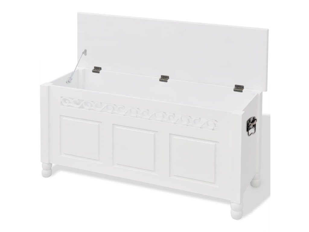 Úložná lavice se dá snadno otvírat a pod jejím víkem se nachází velký úložný prostor pro skladování vašich věcí. Díky skrytému vnitřnímu úložnému prostoru je lavice funkční, aniž by to nějak narušilo její stylovou atraktivnost. Protože je vyrobena z vysoce kvalitního MDF, je tato úložná lavice odolná.