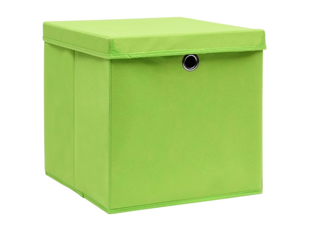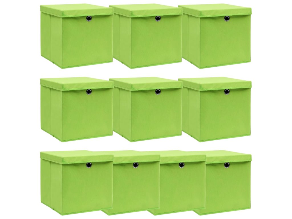 Úložné boxy s víky 10 ks zelené 32 x 32 x 32 cm textil 288372