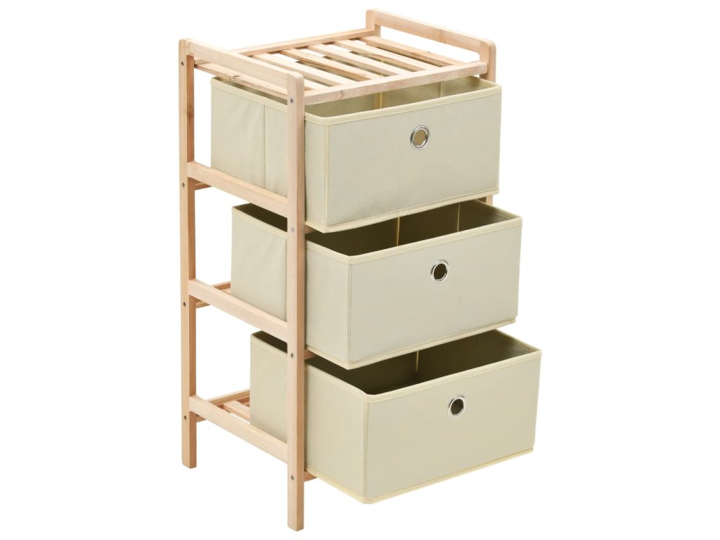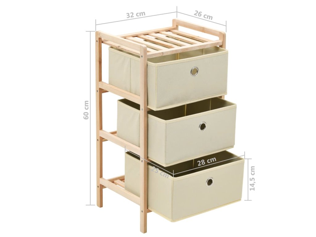 Tento úložný stojan z masivního dřeva se 3 oddělenými látkovými košíky vám poskytne dostatek místa pro uložení vašich předmětů každodenní potřeby.