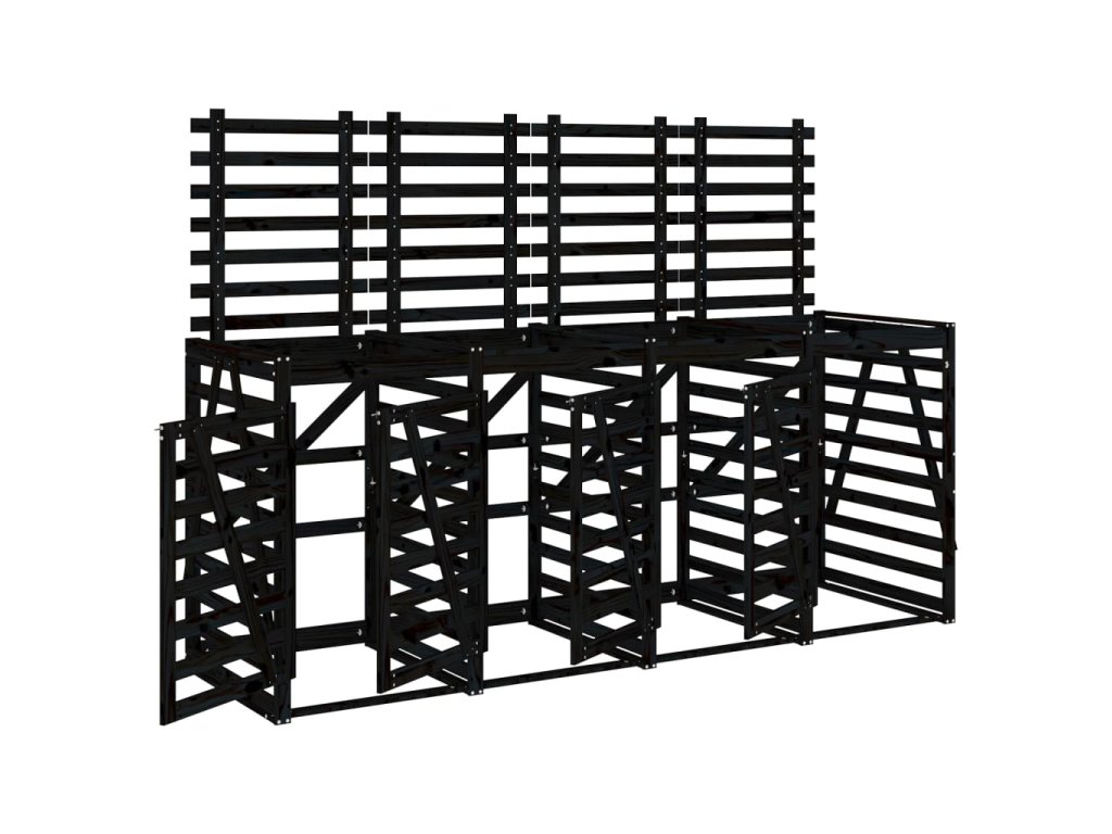 Úložný box na čtyři popelnice černý masivní borové dřevo 3157701