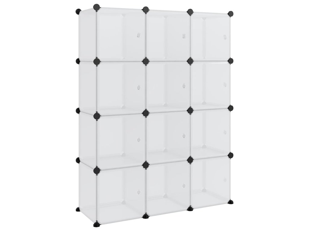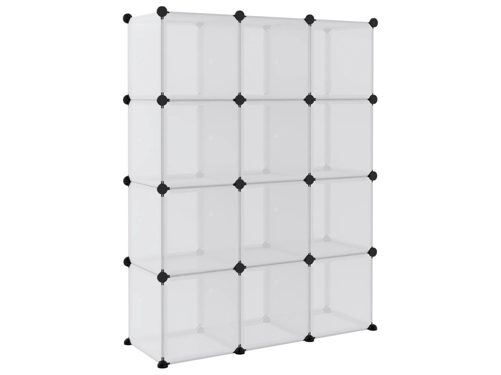 Úložný organizér kostka s 12 kostkami a dvířky průhledný PP 340555