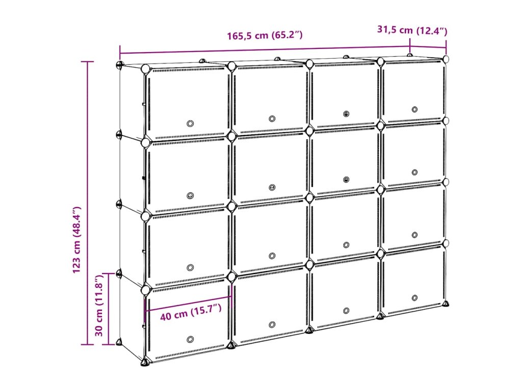 - Dostatek úložného prostoru: Každá kostka je vybavena dělicí deskou, která vytváří dvě přihrádky na kostku. Díky více úložným přihrádkám je zde dostatek prostoru pro uložení oblečení, bot a doplňků, stejně jako pro uspořádání knih, každodenních potřeb a kancelářských potřeb.