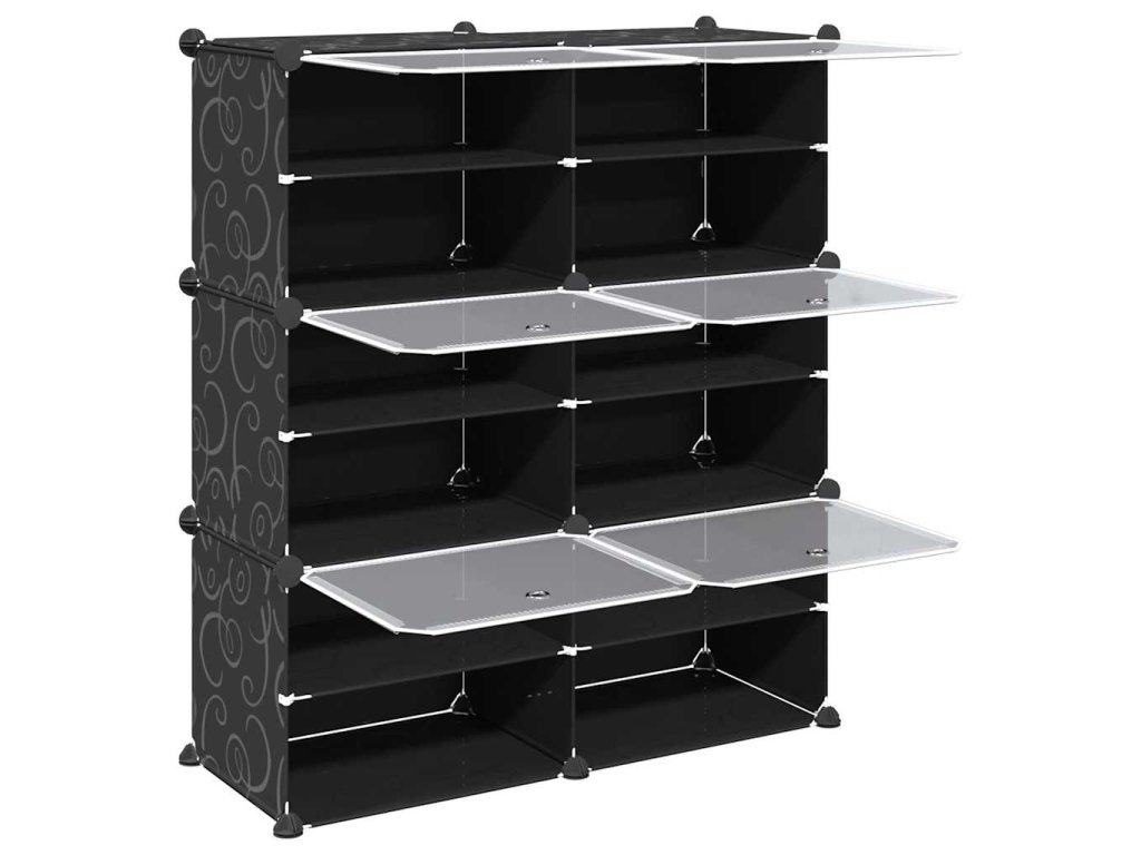 Úložný organizér s 6 kostkami s dvířky černý PP 4019576