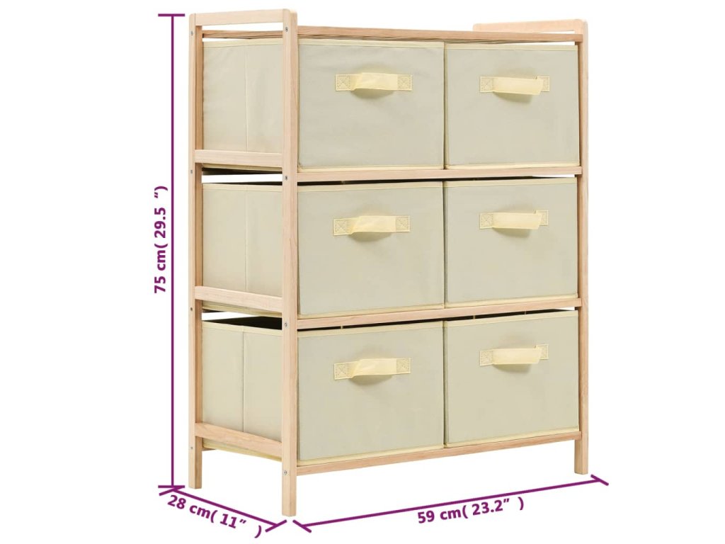 Úložný regál s 6 látkovými košíky cedrové dřevo béžový 246439