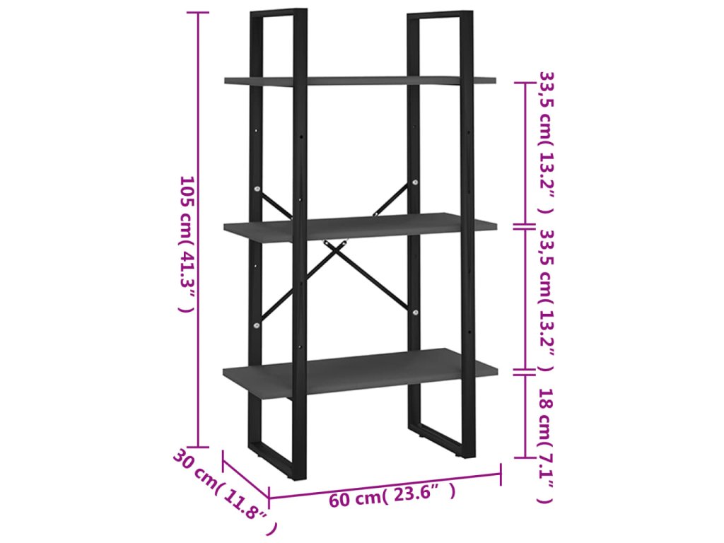 Úložný regál šedý 60 x 30 x 105 cm kompozitní dřevo 806509
