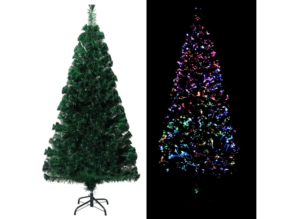 Tento půvabný vánoční stromek je vyrobený z PVC a optického vlákna, přičemž svým tvarem i vzhledem působí úplně jako živý. Ocelový stojan zaručuje výtečnou stabilitu. Když ho zapojíte do elektřiny, rozsvítí se v pěti barvách: modré, fialové, červené, zelené a oranžové. Vánoční stromek lze používat rok co rok, ve srovnání s živým stromem jde tedy o úspornější variantu. Navíc je vhodný pro vnitřní i zastřešené venkovní použití.