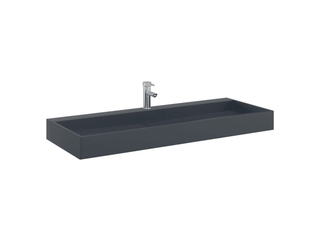 Umyvadlo 120x46x11 cm minerální/mramorový kompozit antracitové 155986