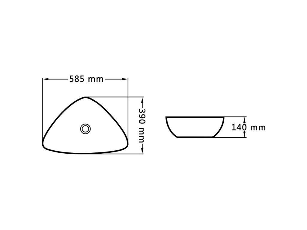 Toto umyvadlo v trojúhelníkovém tvaru je vyrobeno z keramiky a představuje stylový a nadčasový doplněk do každé koupelny, umývárny, šatny nebo na toalety.