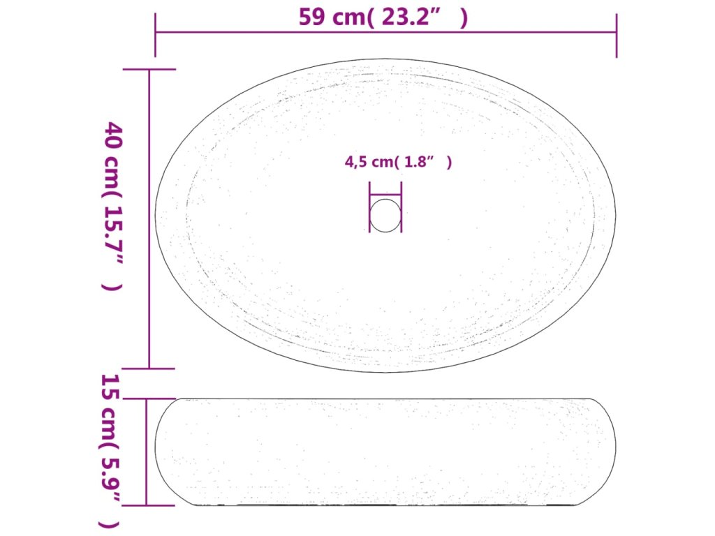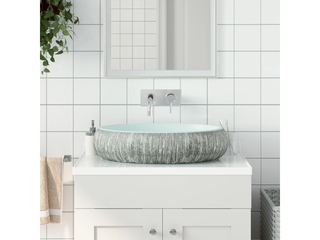 Umyvadlo na desku šedé a modré oválné 59 x 40 x 15 cm keramika 155093