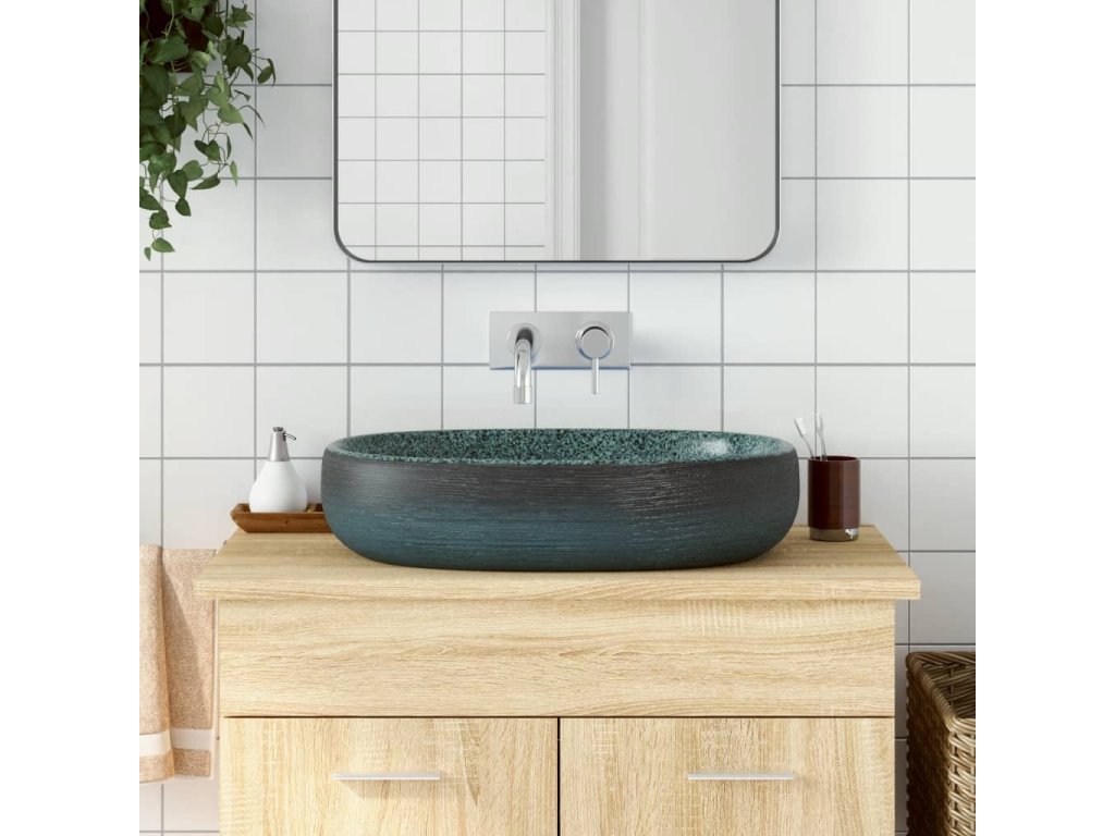 Umyvadlo na desku tyrkysové oválné 59 x 40 x 14 cm keramika 155101