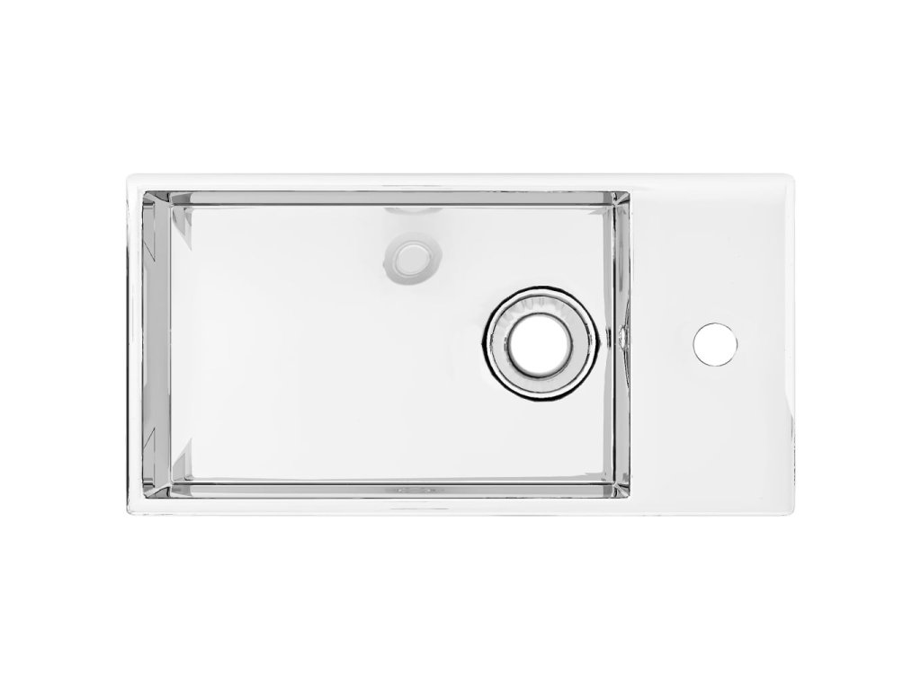 Koupelnové umyvadlo vám nejen poslouží jako prostředek k vykonávání vaší každodenní hygieny, ale stane se také skutečnou ozdobou vašeho interiéru. Díky svému modernímu a nadčasovému designu se bude hodit do každé koupelny. Umyvadlo je vyrobeno z keramiky, velmi snadno se tedy čistí. Vysoce lesklý povrch mu navíc dodává jisté kouzlo. Umyvadlo je vybaveno přepadem, který zajistí bezpečný odtok vody, pokud se umyvadlo přeplní. Nedílnou součástí umyvadla je i otvor pro instalaci baterie.