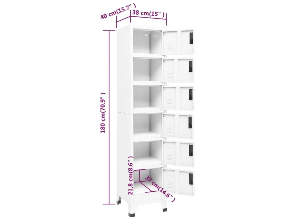 Úložná skříňka je vyrobena z oceli, proto má dlouhou životnost a snadno se čistí. Každá přihrádka je vybavena uzamykatelnými dvířky s větracími otvory. Skříň má dostatek úložného prostoru pro bezpečné uložení oblečení a dalších osobních věcí. Držáky na štítky umožňují přehledně třídit vaše položky. Tato skříň je vhodná do škol a kanceláří k uložení nejrůznějších věcí.
