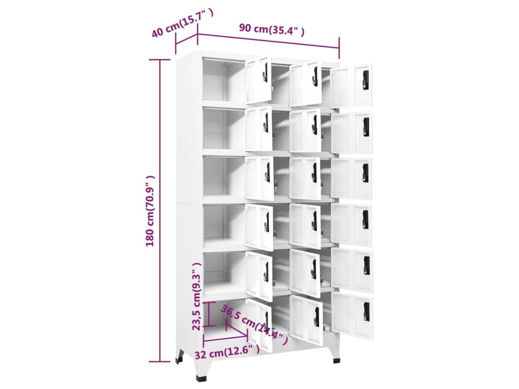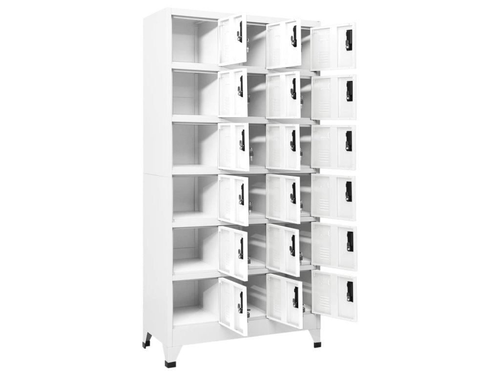Úložná skříňka je vyrobena z oceli, proto má dlouhou životnost a snadno se čistí. Každá přihrádka je vybavena uzamykatelnými dvířky s větracími otvory. Skříň má dostatek úložného prostoru pro bezpečné uložení oblečení a dalších osobních věcí. Držáky na štítky umožňují přehledně třídit vaše položky. Tato skříň je vhodná do škol a kanceláří k uložení nejrůznějších věcí.
