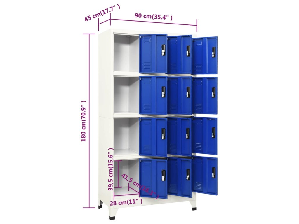 Úložná skříňka je vyrobena z oceli, proto má dlouhou životnost a snadno se čistí. Každá přihrádka je vybavena uzamykatelnými dvířky s větracími otvory. Skříň má dostatek úložného prostoru pro bezpečné uložení oblečení a dalších osobních věcí. Držáky na štítky umožňují přehledně třídit vaše položky. Tato skříň je vhodná do škol a kanceláří k uložení nejrůznějších věcí.