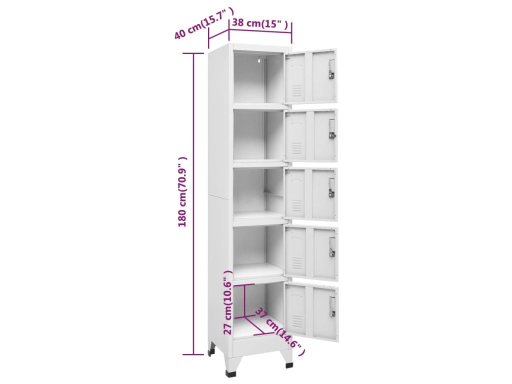 Úložná skříňka je vyrobena z oceli, proto má dlouhou životnost a snadno se čistí. Každá přihrádka je vybavena uzamykatelnými dvířky s větracími otvory. Skříň má dostatek úložného prostoru pro bezpečné uložení oblečení a dalších osobních věcí. Držáky na štítky umožňují přehledně třídit vaše položky. Tato skříň je vhodná do škol a kanceláří k uložení nejrůznějších věcí.