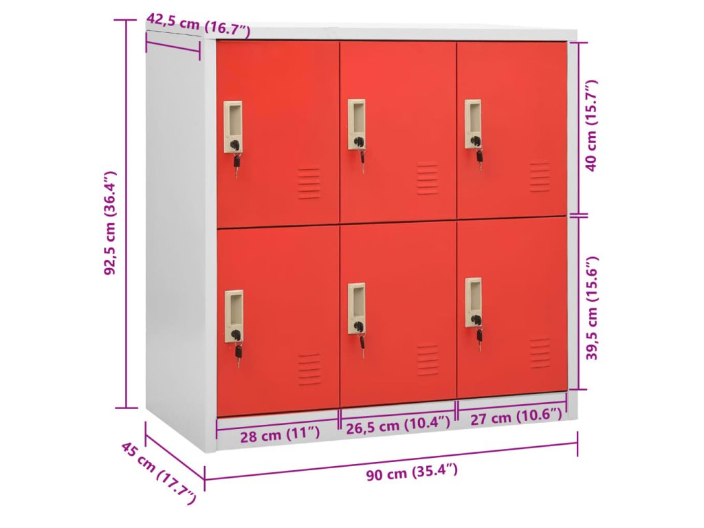 Skříňka je vyrobena z oceli, takže je odolná a snadno se čistí. Tento úložný organizér se zámky nabízí spoustu úložného prostoru pro nejrůznější předměty, jako je obuv, tašky, knihy, složky atd. Skříňka se skvěle hodí do škol i kanceláří na skladování různých věcí.