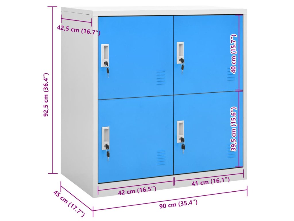 Skříňka je vyrobena z oceli, takže je odolná a snadno se čistí. Tento úložný organizér se zámky nabízí spoustu úložného prostoru pro nejrůznější předměty, jako je obuv, tašky, knihy, složky atd. Skříňka se skvěle hodí do škol i kanceláří na skladování různých věcí.