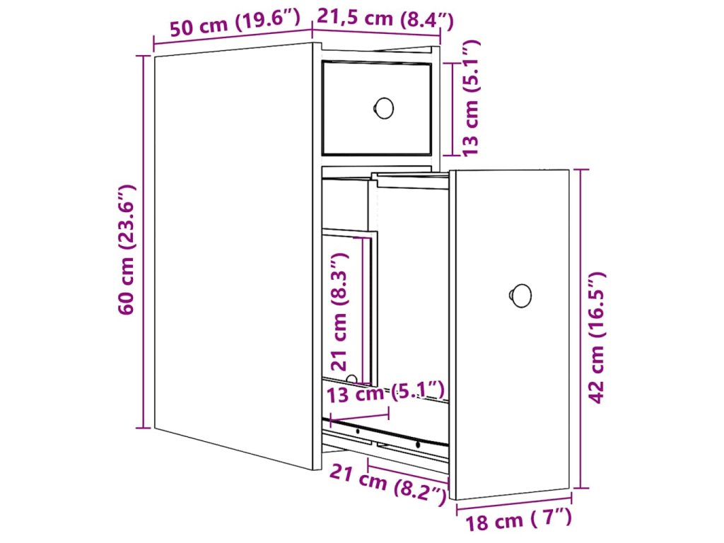 - Celkové rozměry: 21,5 x 50 x 60 cm (Š x H x V)