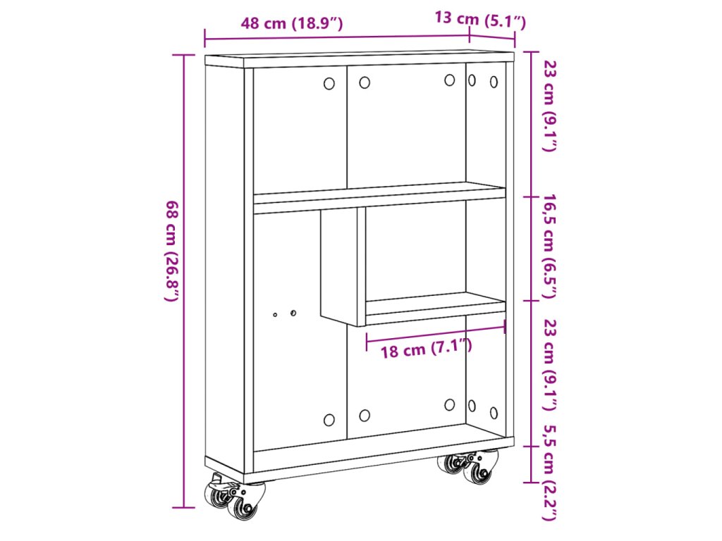 Úzký úložný vozík, dub sonoma, 48 x 13 x 68 cm, konstrukční dřevo 855225