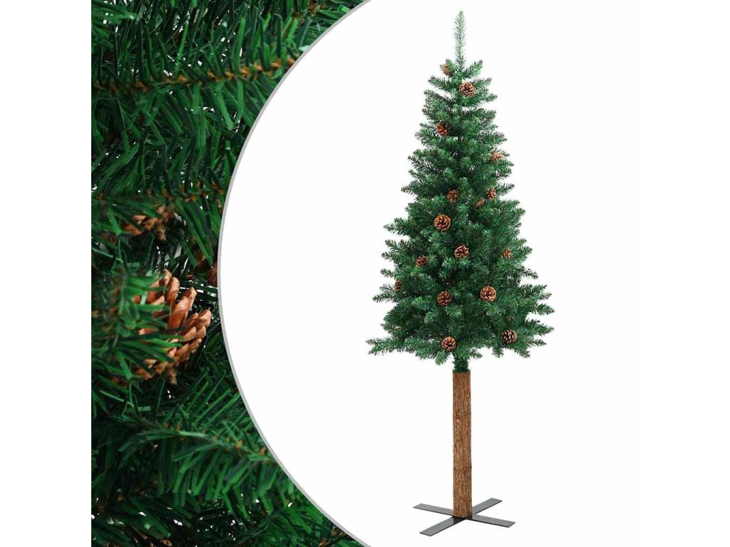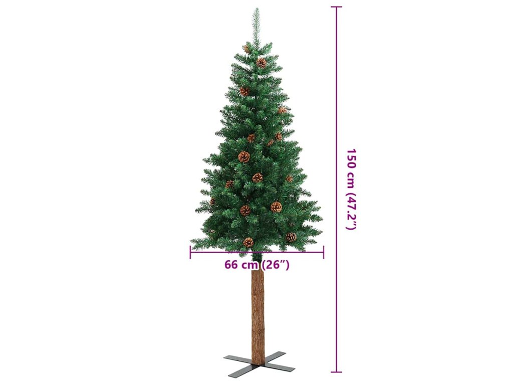 Úzký vánoční stromek pravé dřevo a šišky zelený 150 cm PVC 320957