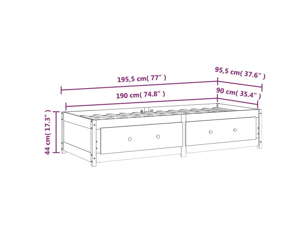 - Tento rám postele je vhodný pro matrace o rozměrech 90 x 190 cm (3FT Single).