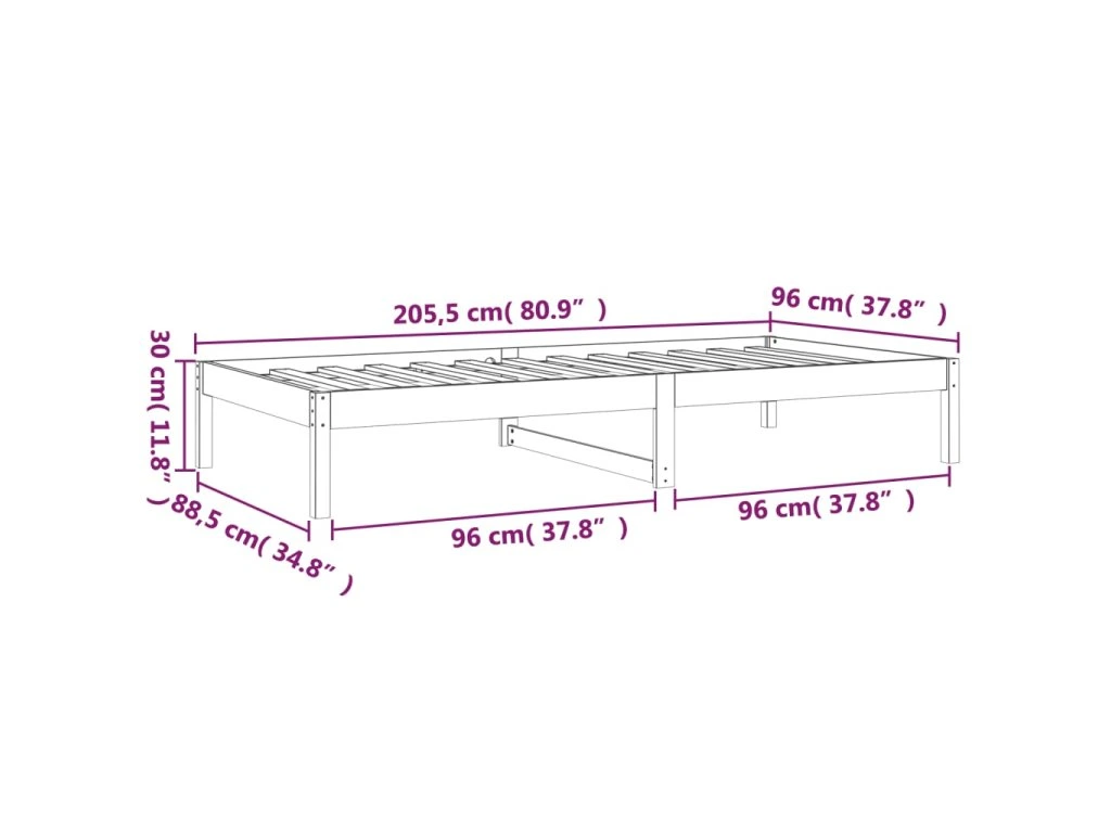 Válenda bez matrace 90 x 200 cm masivní borovice 820412