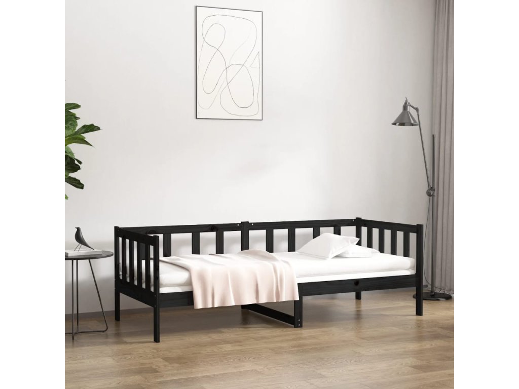 Válenda černá 80 x 200 cm masivní borové dřevo 814688