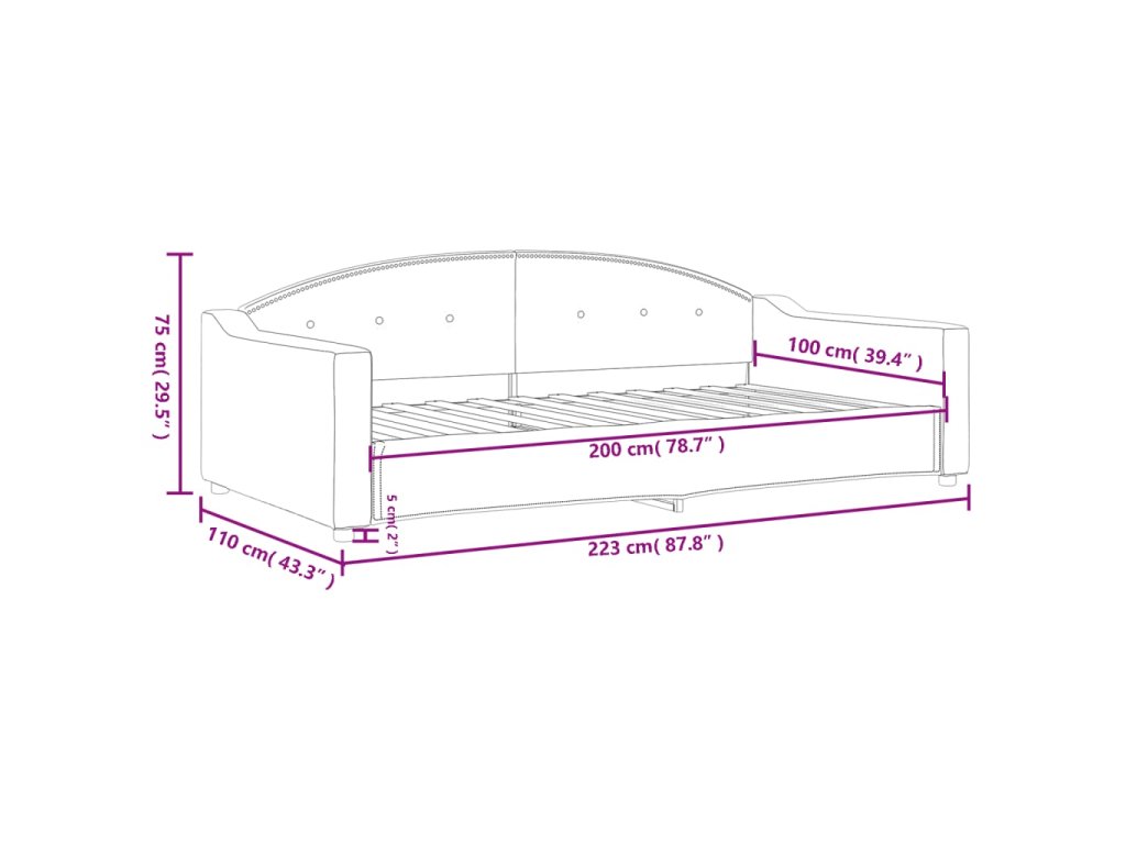 - Rozměry sedáku: 100 x 200 cm (Š x D)