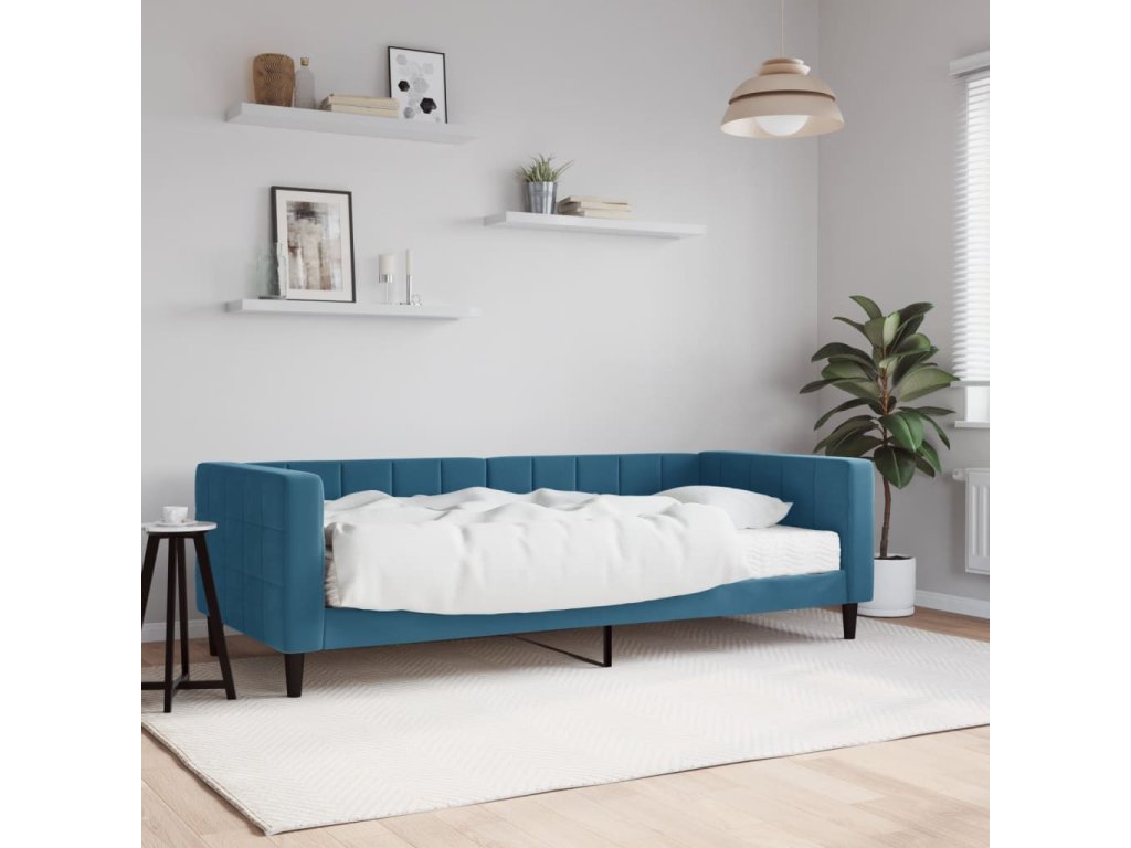 Válenda s matrací modrá 90 x 200 cm samet 3196666