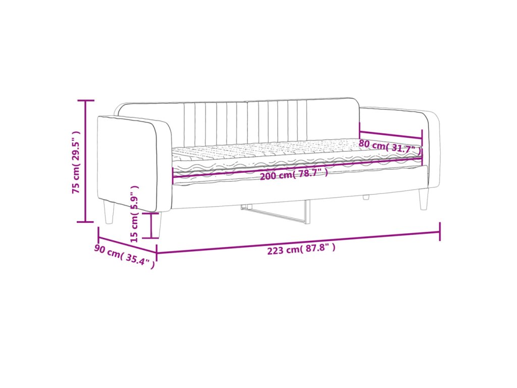 - Rozměry: 223 x 90 x 75 cm (D x Š x V)