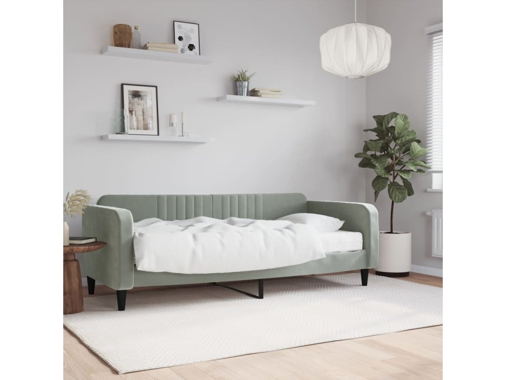 Válenda s matrací světle šedá 90 x 200 cm samet 3197039