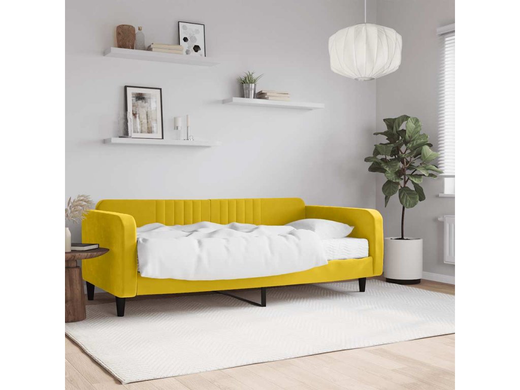 Válenda s matrací žlutá 100 x 200 cm samet 3197051