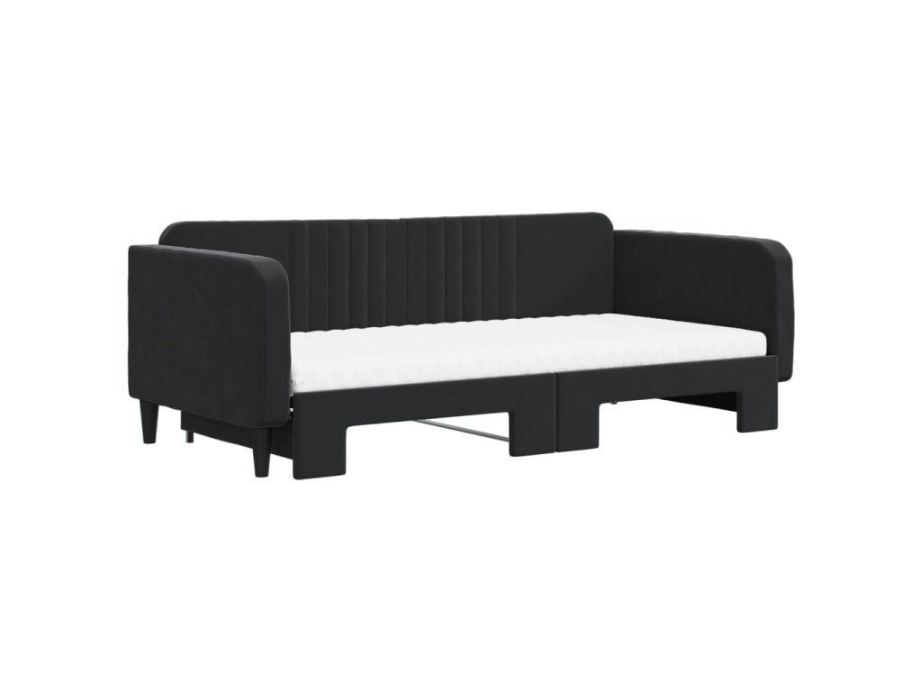 Válenda s přistýlkou a matracemi černá 100 x 200 cm samet 3197098