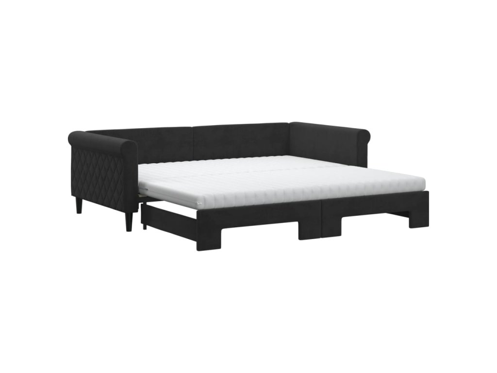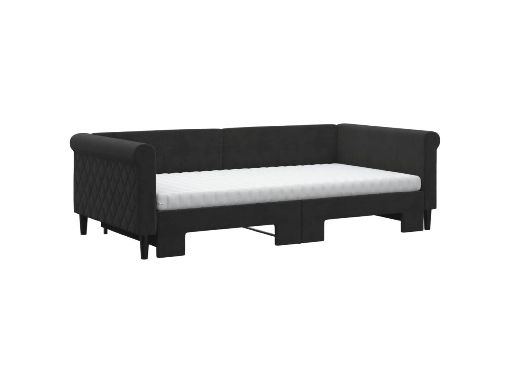 Válenda s přistýlkou a matracemi černá 100 x 200 cm samet 3197806