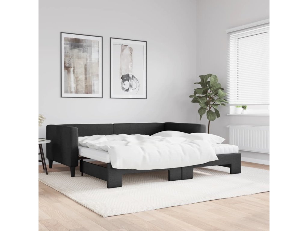 Válenda s přistýlkou a matracemi černá 100 x 200 cm textil 3196603