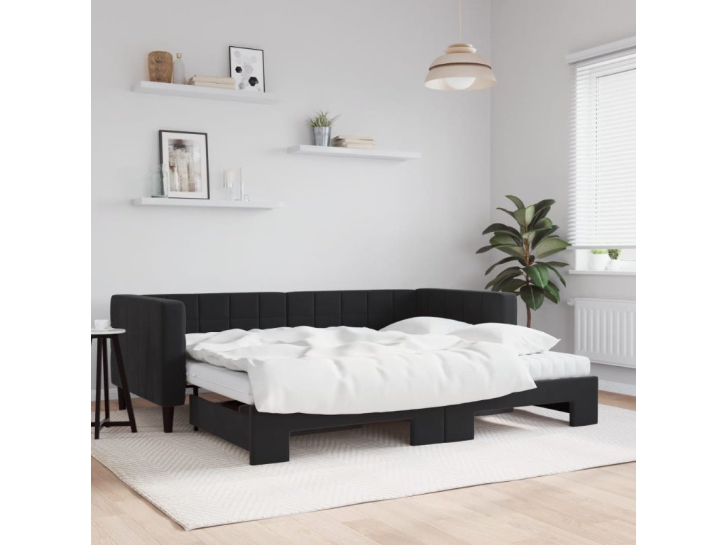 Válenda s přistýlkou a matracemi černá 90 x 200 cm samet 3196719