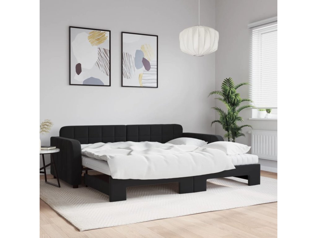Válenda s přistýlkou a matracemi černá 90 x 200 cm samet 3196957