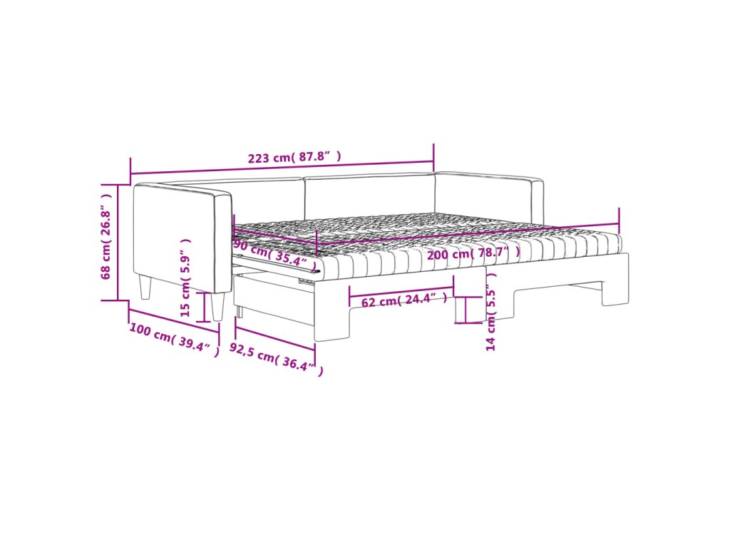 - Rozměry (nevysunuté): 223 x 100 x 68 cm (D x Š x V)