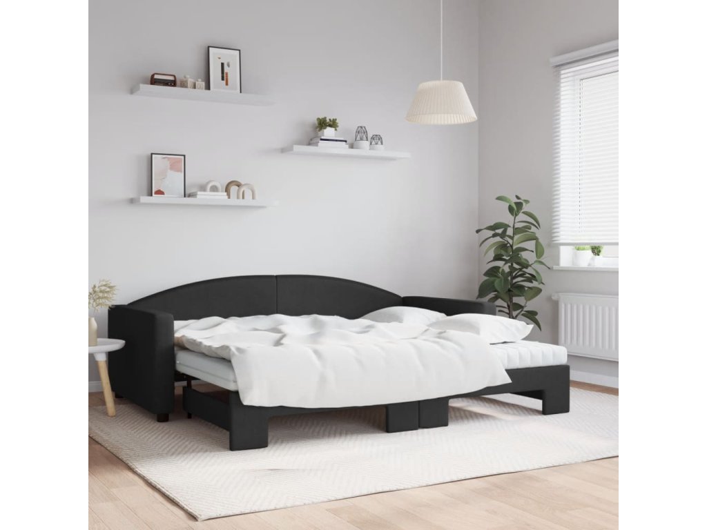 Válenda s přistýlkou a matracemi černá 90 x 200 cm textil 3197208