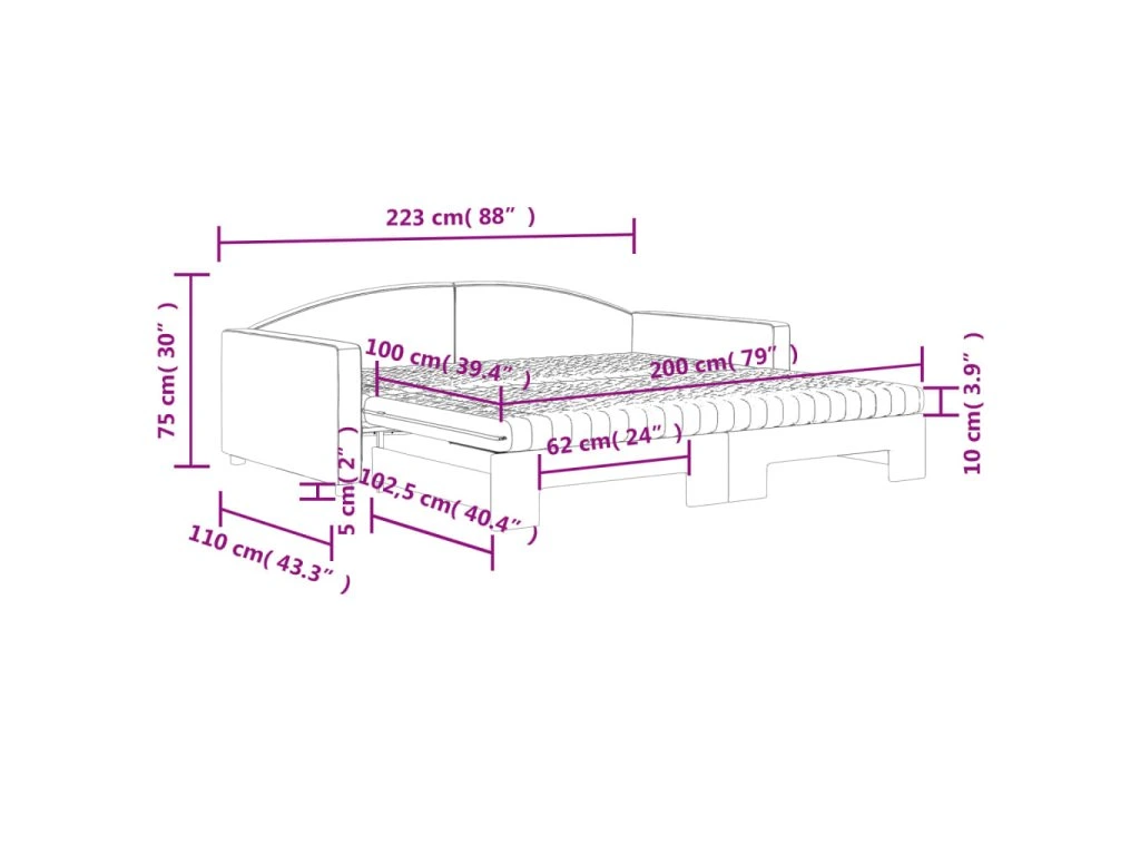 - Rozměry (nevysunuté): 223 x 110 x 75 cm (Š x H x V)