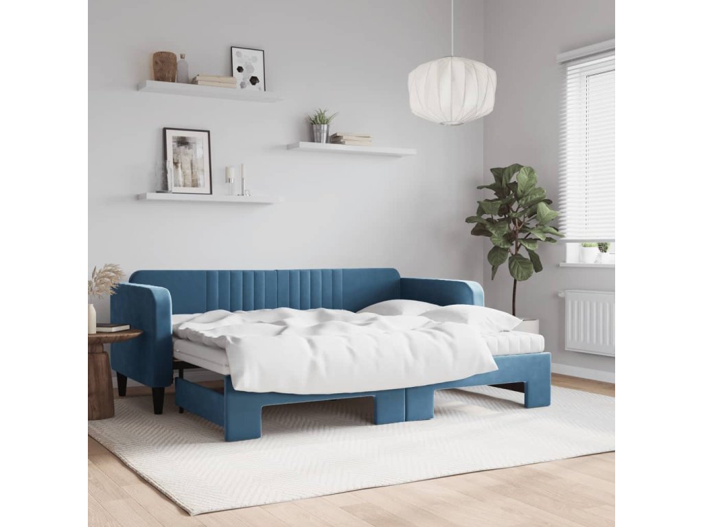 Válenda s přistýlkou a matracemi modrá 80 x 200 cm samet 3197079