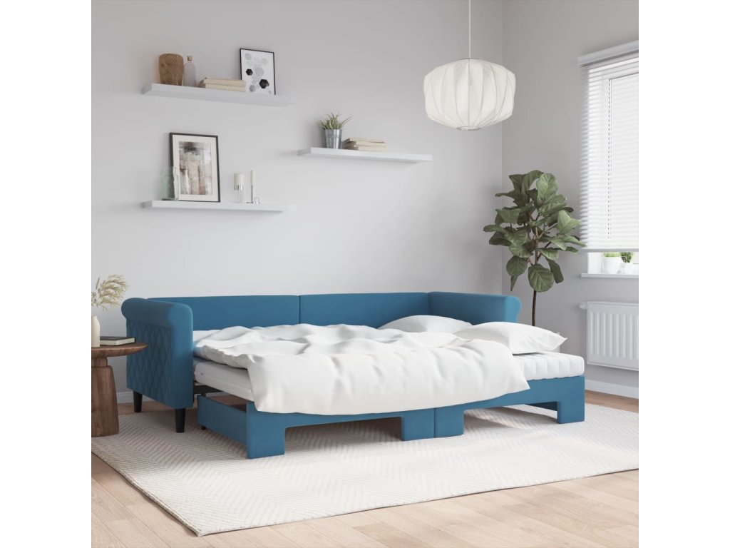 Válenda s přistýlkou a matracemi modrá 80 x 200 cm samet 3197787