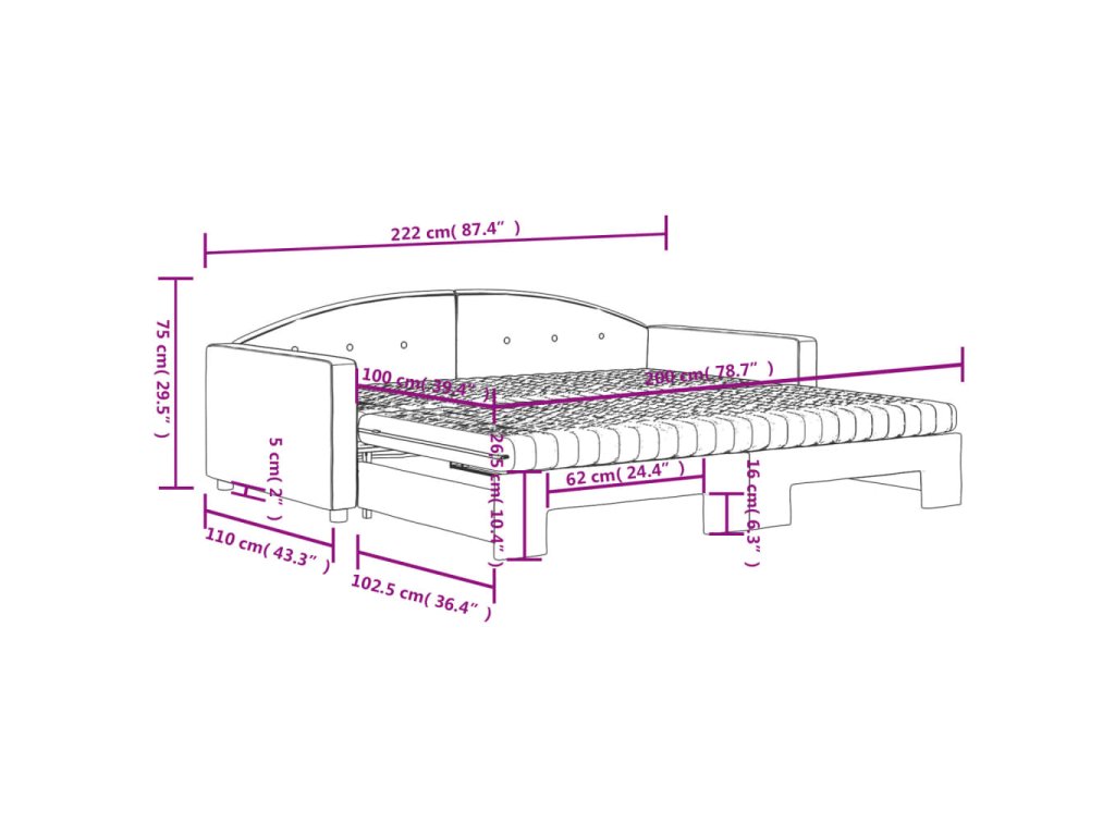 Tato válenda s přistýlkou a matracemi 2 v 1, která vám poslouží jako pohovka a zároveň i jako postel, se stane praktickým a poutavým doplňkem vašeho obývacího pokoje nebo ložnice.